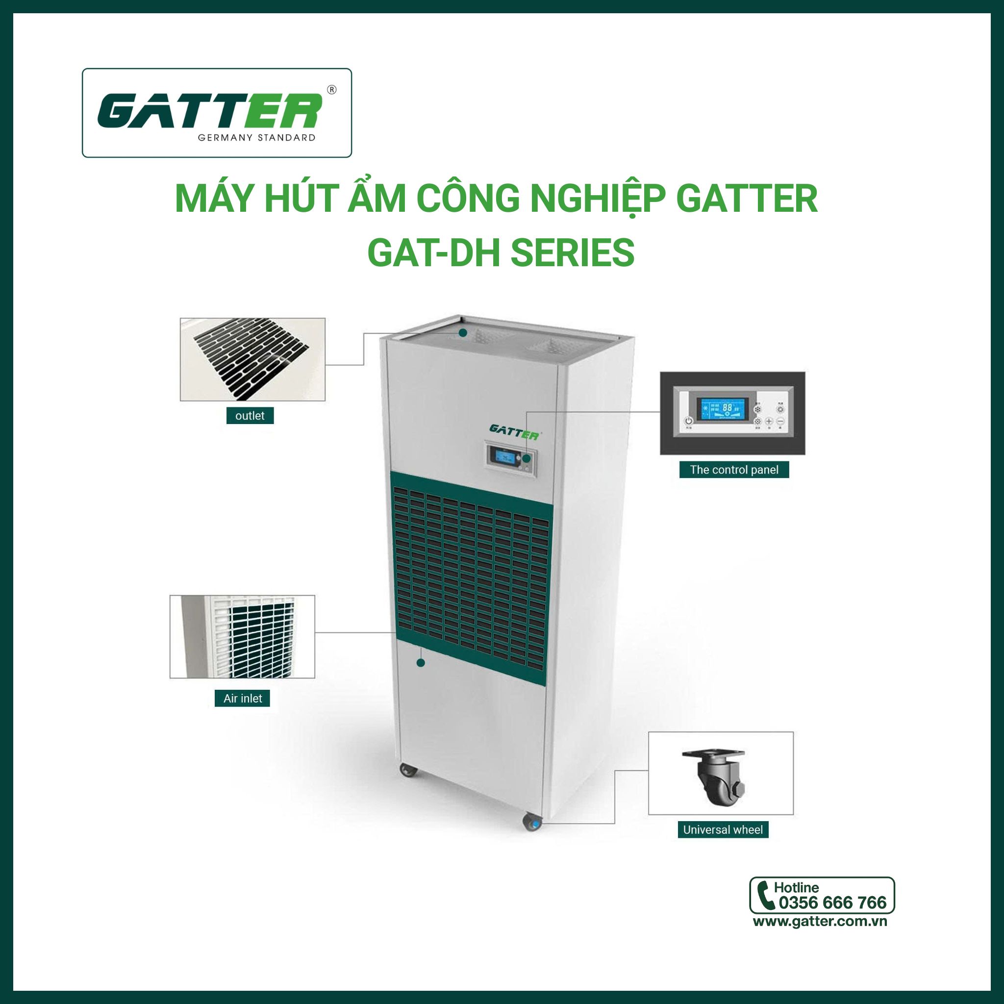 Gatter là thương hiệu chuyên cung cấp giải pháp toàn diện cho kho lạnh, phòng sạch và nhà xưởng hiện đại với các sản phẩm chủ lực như: máy hút ẩm công nghiệp, cửa kho lạnh, cửa phòng sạch, cửa đóng mở nhanh, dock shelter, sàn nâng hạ thủy lực, rèm PVC và quạt cắt gió. Với phương châm “Chất lượng là vàng – Giá cả cạnh tranh”, Gatter luôn đặt khách hàng làm trung tâm, cam kết mang đến sản phẩm chất lượng cao, dịch vụ tận tâm và giá trị bền vững cho mọi công trình. Gatter – đối tác tin cậy của các doanh nghiệp trong lĩnh vực nhà máy công nghiệp, chế biến, bảo quản và logistics.