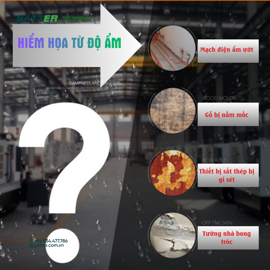 - Giải pháp: Đầu tư máy hút ẩm Gatter giúp hạ nhiệt độ điểm sương, giữ cho bề mặt vật liệu luôn khô ráo.